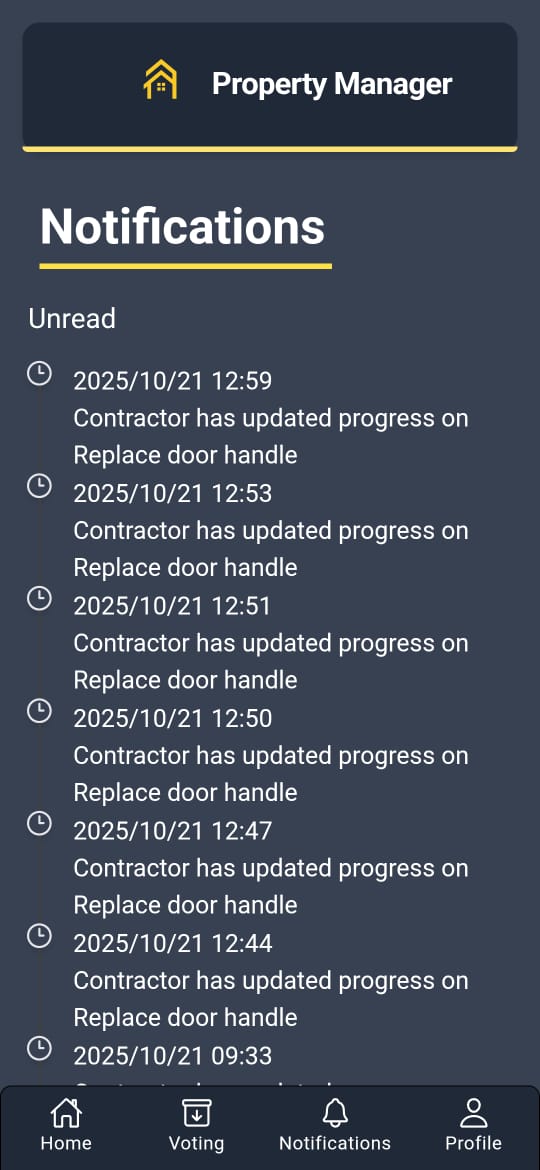 Property Management simplifies the budgeting, scheduling and progress tracking of property maintenance through intelligent contractor management, automated inventory tracking, and AI-powered cost analysis. The system streamlines quote consolidation, trustee approval workflows, and provides predictive insights for optimal property investment decisions.